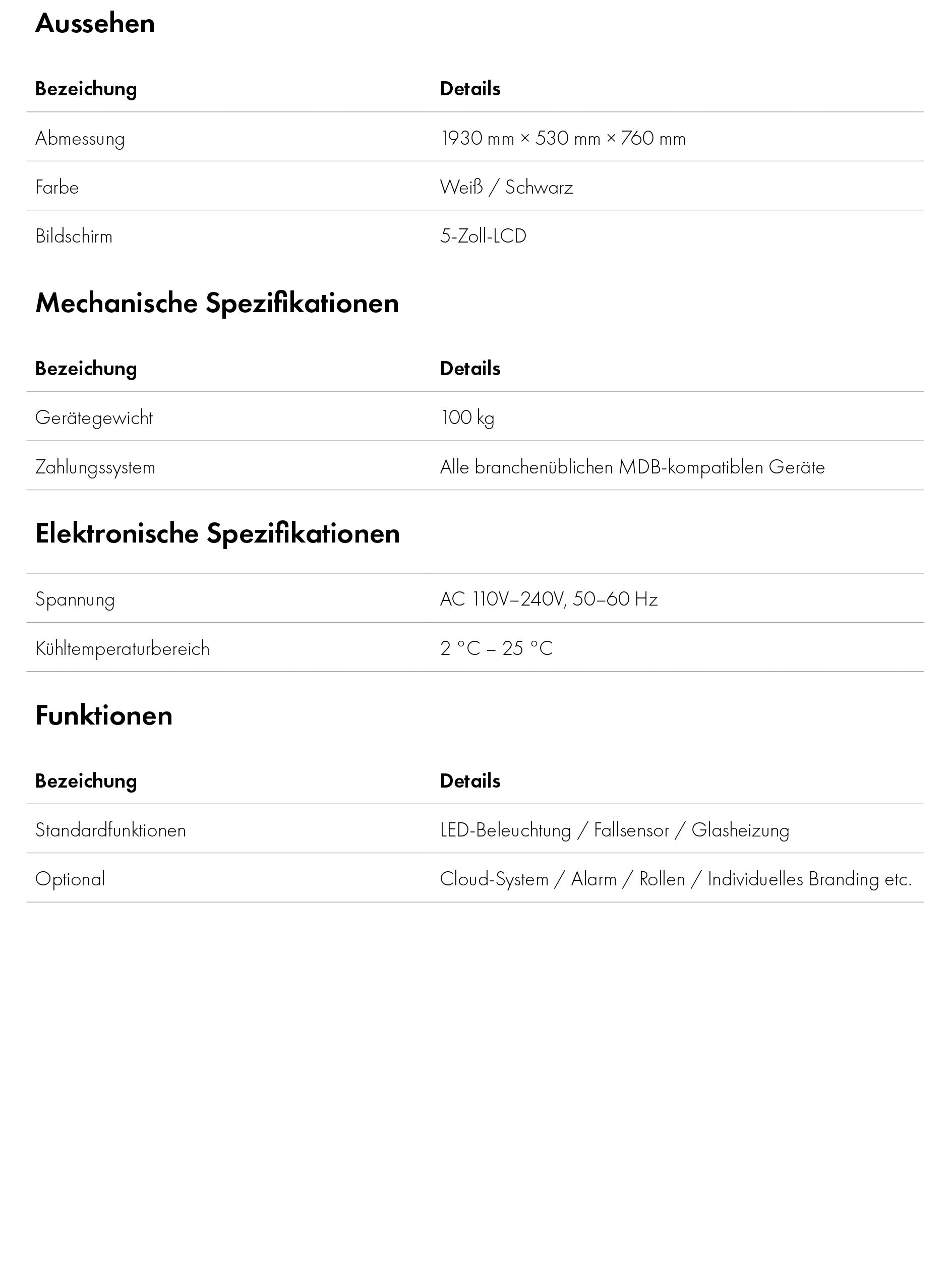 - Zahlungssystem: Alle branchenüblichen MDB-kompatiblen Geräte